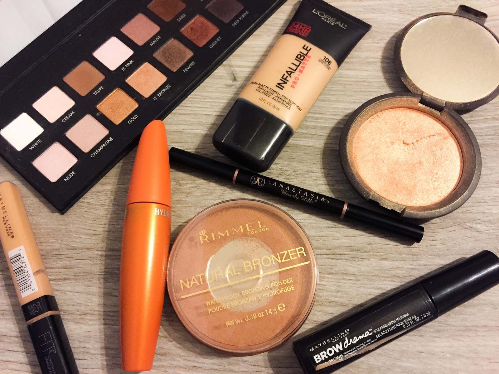 As I was looking through all the hotels on Las Vegas hotels page, Mandalay Bay was definitely a favorite of mine. This hotel is gorgeous! It definitely has the right vibe for those pool parties. Since you don't want to be outside in the heat and at the pool in a full face of makeup, I like to keep things pretty simple for a daytime look. Start off with sunscreen. Spot treat and cover dark under eyes with a light and creamy concealer. I love the Maybelline Fit Me concealer. Lightly fill in your brows and apply some brow gel to keep them in place. Even if I'm out in the sun, I like to have a little definition in my eyes, so I would apply a bit of bronzer in my crease, add a light shimmer to the lid, and pack on a waterproof mascara. The Cover Girl Lash Blast waterproof formula is my absolute favorite! Bronzer and highlighter are essentials for a daytime look for me. Lastly, a colored lip balm finishes off my daytime look.